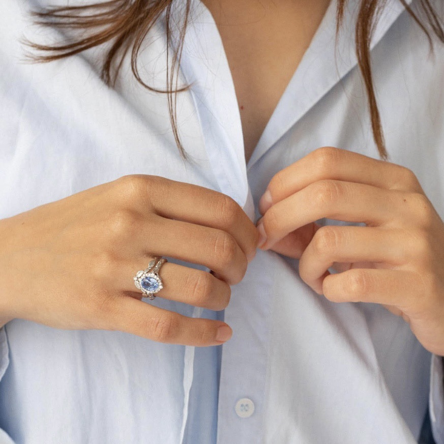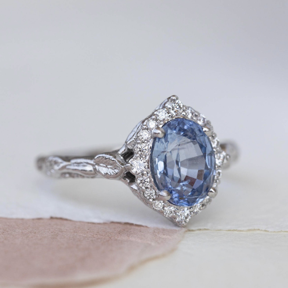 Vintage Court Style Women's Couple Rings Fashion Leaf Inlaid Sapphire Ring